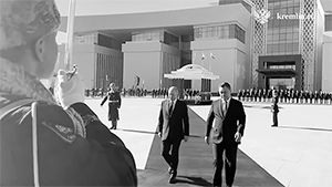 Президент России Владимир Путин начал официальный визит в Киргизию, он прибыл на своем лимузине в сопровождении кавалерии в комплекс «Ынтымак ордо» на встречу с президентом Киргизии Садыром Жапаровым.