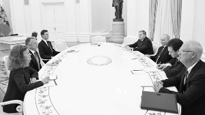 Президент России Владимир Путин начал встречу с американскими переговорщиками – спецпосланником Стивеном Уиткоффом и Джаредом Кушнером, который также является зятем президента США Дональда Трампа.