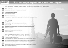 Ранее служившие в российских силовых структурах граждане России уже в статусе гражданских лиц имеют право стать резервистами Минобороны РФ. Какие задачи выполняют резервисты и при каких условиях – в инфографике газеты ВЗГЛЯД