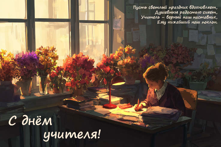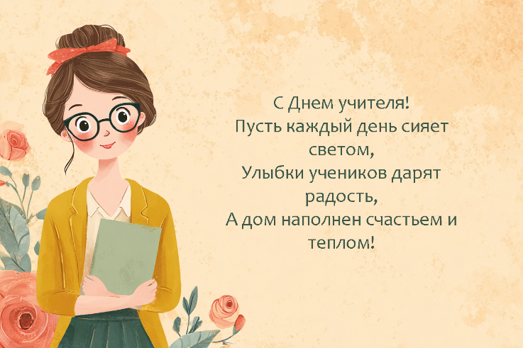 «С Днем учителя! Пусть каждый день сияет светом, улыбки учеников дарят радость, а дом наполнен счастьем и теплом».
