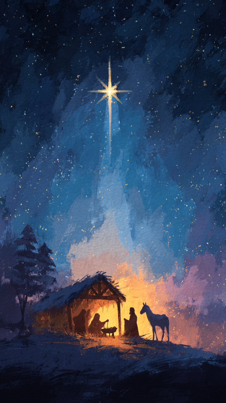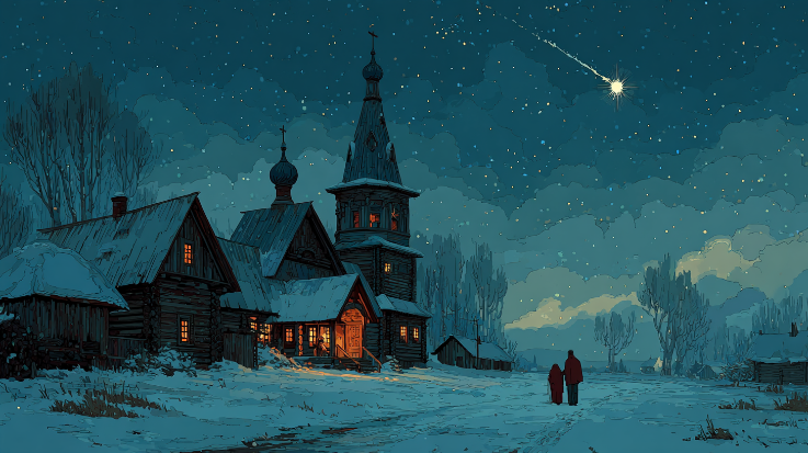 Цветовая гамма чаще всего выдержана в глубоких, но теплых тонах: оттенках синего и фиолетового для ночного неба, золотого и желтого для сияния звезд и свечей, белого для чистоты снега. Такие изображения визуально передают ощущение тишины, благоговения и чуда.