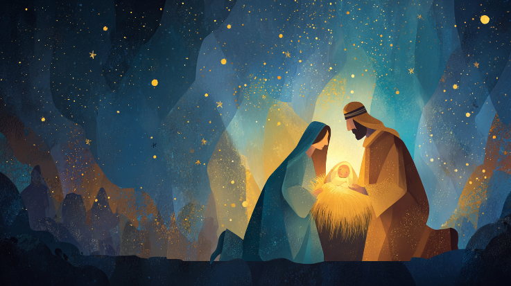 Вертеп (пещеру) с Младенцем Христом, Девой Марией и Иосифом.