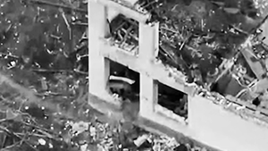 В сети появилось видео, где российский военнослужащий держит государственный флаг в освобожденном военными населенном пункте Двуречанское в Харьковской области.