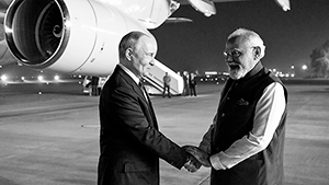 Премьер-министр Индии Нарендра Моди лично встретил президента России Владимира Путина на авиабазе ВВС Индии Палам.