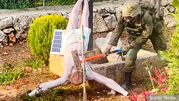 Ранее ливанские СМИ распространили кадры, на которых израильский военный ломает статую Христа в южноливанском поселении Дибель.