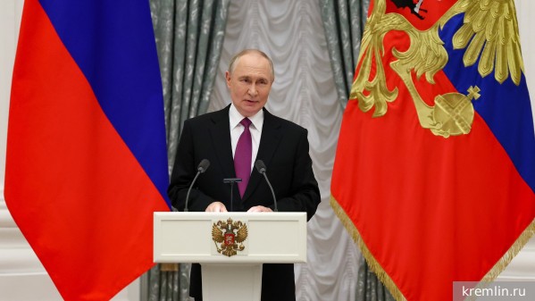 Президент России Владимир Путин на церемонии награждения подчеркнул, что Россия развивает стратегический потенциал наравне с другими ядерными державами, но никому не угрожает.