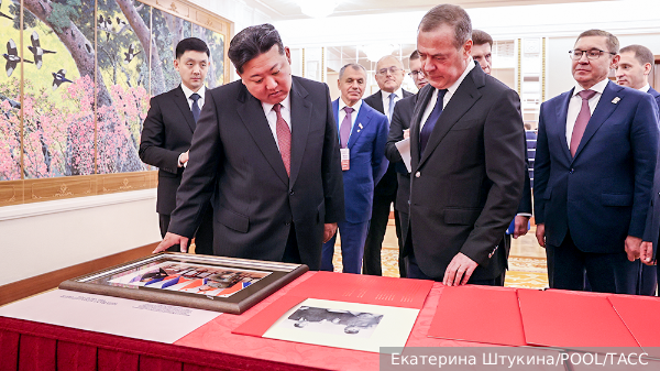 Как писала газета ВЗГЛЯД, Дмитрий Медведев посетил школу подготовки кадров Трудовой партии Кореи во время визита в КНДР. Медведев выразил благодарность руководству Северной Кореи за поддержку спецоперации на Украине. Он также заявил о вечной памяти подвига военных КНДР, проявленного в Курской области.