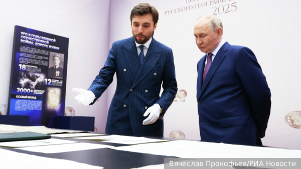 После выступления глава государства посетил выставку проектов РГО, где были представлены архивные документы, карты, фотографии, а также экспонаты, обнаруженные в ходе экспедиций общества, передает РИА «Новости».