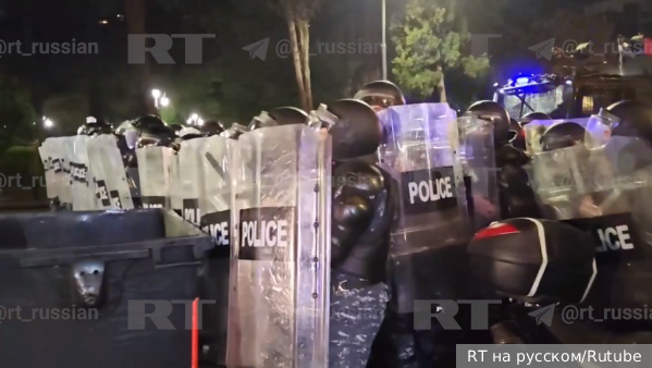 Ранее митингующие в Тбилиси ворвались во двор президентского дворца. Полиция Тбилиси применяла водометы и перцовый спрей против протестующих.