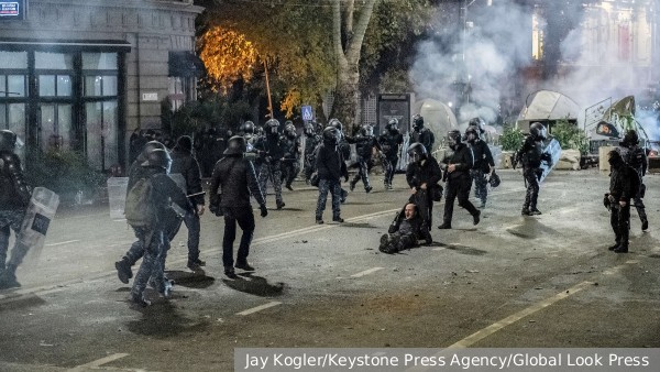 Митингующие в Тбилиси ворвались во двор президентского дворца. Полиция Тбилиси применила водометы и перцовый спрей против протестующих.