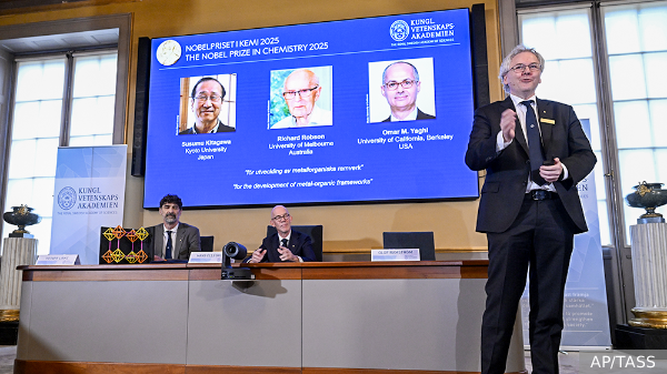 Лауреатами Нобелевской премии по химии в 2025 году стали Сусуму Китагава, Ричард Робсон и Омар Яги за инновации в области металлоорганических каркасов.