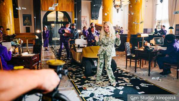Героиня Долиной– строгий главный бухгалтер банка и двоюродная тетя антагониста фильма товарища Саахова. В фильме героиня Долиной показана как влиятельная женщина, которая ценит деньги, порядок и власть, уточняется в материале. В одном из ключевых моментов она исполняет композицию Инстасамки «За деньги – да!» в необычной джазово-корпоративной стилистике.