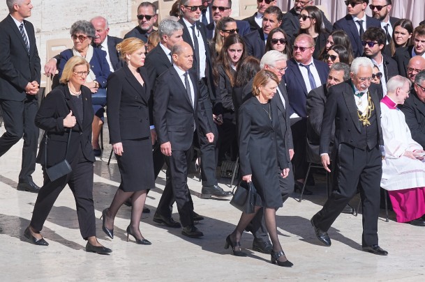 Немецкая делегация во главе с канцлером Фридрихом Мерцем (фото: Michael Kappeler/dpa/Global Look Press)