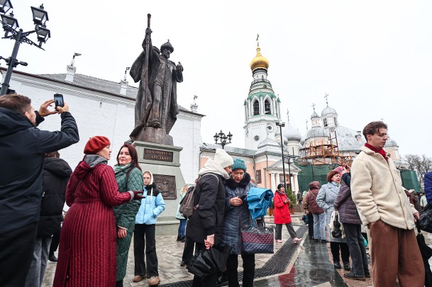 Памятник расположили возле трехэтажного корпуса Вологодского кремля, что создало гармоничный вид ансамбля – визитной карточки областной столицы и всего региона. Рядом с ним видны Воскресенский собор и колокольня – символы духовной силы и культурно-исторического наследия жителей (фото: Даниил Зинченко/ТАСС)