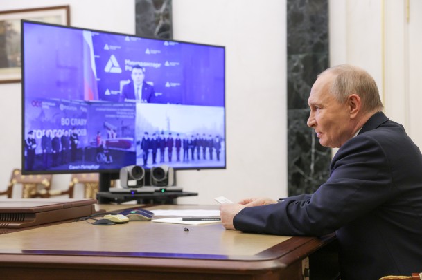 Глава государства участвовал в церемонии в режиме видеоконференции. Владимир Путин выразил уверенность, что «Сталинград» станет еще одним символом таланта, силы, созидательной энергии россиян (фото: Гавриил Григоров/ТАСС)