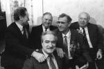 Москва, 1990 год. Слева направо: Алексей Парамонов, Никита Симонян, Николай Озеров и Георгий Саркисьянц (на первом плане) пришли поздравить одного из лучших вратарей в истории мирового футбола Льва Яшина с присвоением звания Героя Соцтруда (фото: Сергей Величкин/Фотохроника ТАСС)