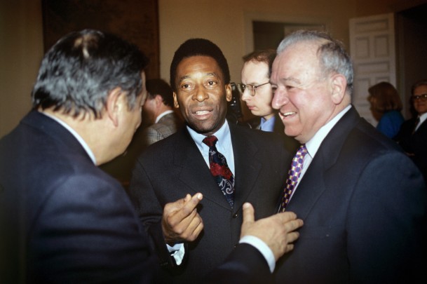 В 1960 году Симонян начал тренерскую деятельность, добиваясь успехов разного уровня со сборной СССР, родным «Спартаком», ереванским «Араратом» и одесским «Черноморцем». В 1986 году Симонян перешел на административную работу в футбольную федерацию. Также он входил в состав Совета при президенте России по физической культуре и спорту. На фото: Пеле и Симонян на приеме в посольстве Бразилии (фото: Владимир Родионов/РИА Новости)