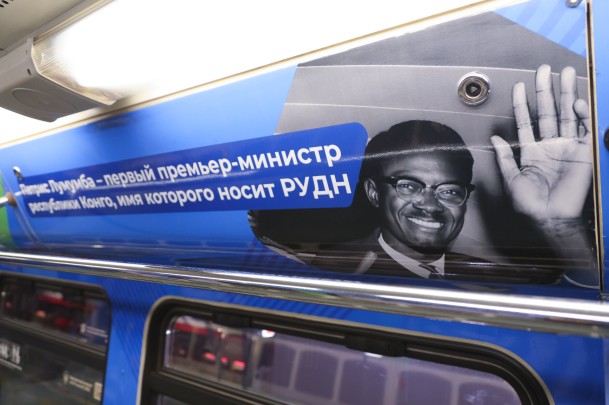 В московском электродепо «Аминьевское» состоялся запуск тематического состава с оформлением в честь 65-летия Российского университета дружбы народов имени Патриса Лумумбы (РУДН). Поезд будет курсировать в течение полугода (фото: Белицкий Дмитрий/Агентство «Москва»)